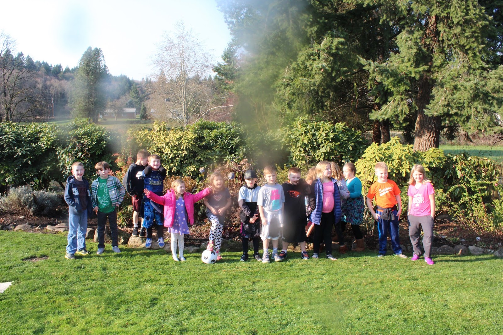 Grace wanted to invite her whole class to come to our house this year for her party! I told her that since it's a busy time of year, some people might not be able to come. It turned out most were available that day, so we had quite a crew! I think there were 17 total! We lucked out that it was a beautiful day and they could play outside! It was crazy, but really fun!